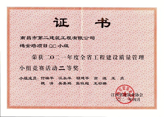 4月27日,江西省建筑業(yè)協(xié)會召開全省建筑業(yè)全面質(zhì)量管理成果發(fā)布會,我司報送參賽的南昌第六糧庫項(xiàng)目QC小組的《提高軟弱地基強(qiáng)夯施工一次驗(yàn)收合格率》QC成果和滕王閣項(xiàng)目QC小組的《提高古建砼戧梁驗(yàn)收合格率》QC成果獲得一等獎,繩金塔項(xiàng)目QC小組的《提高高空弧形挑檐施工質(zhì)量》QC成果獲得二等獎,為促進(jìn)企業(yè)技術(shù)創(chuàng)新和科技進(jìn)步、提升企業(yè)品牌形象添勁加力。