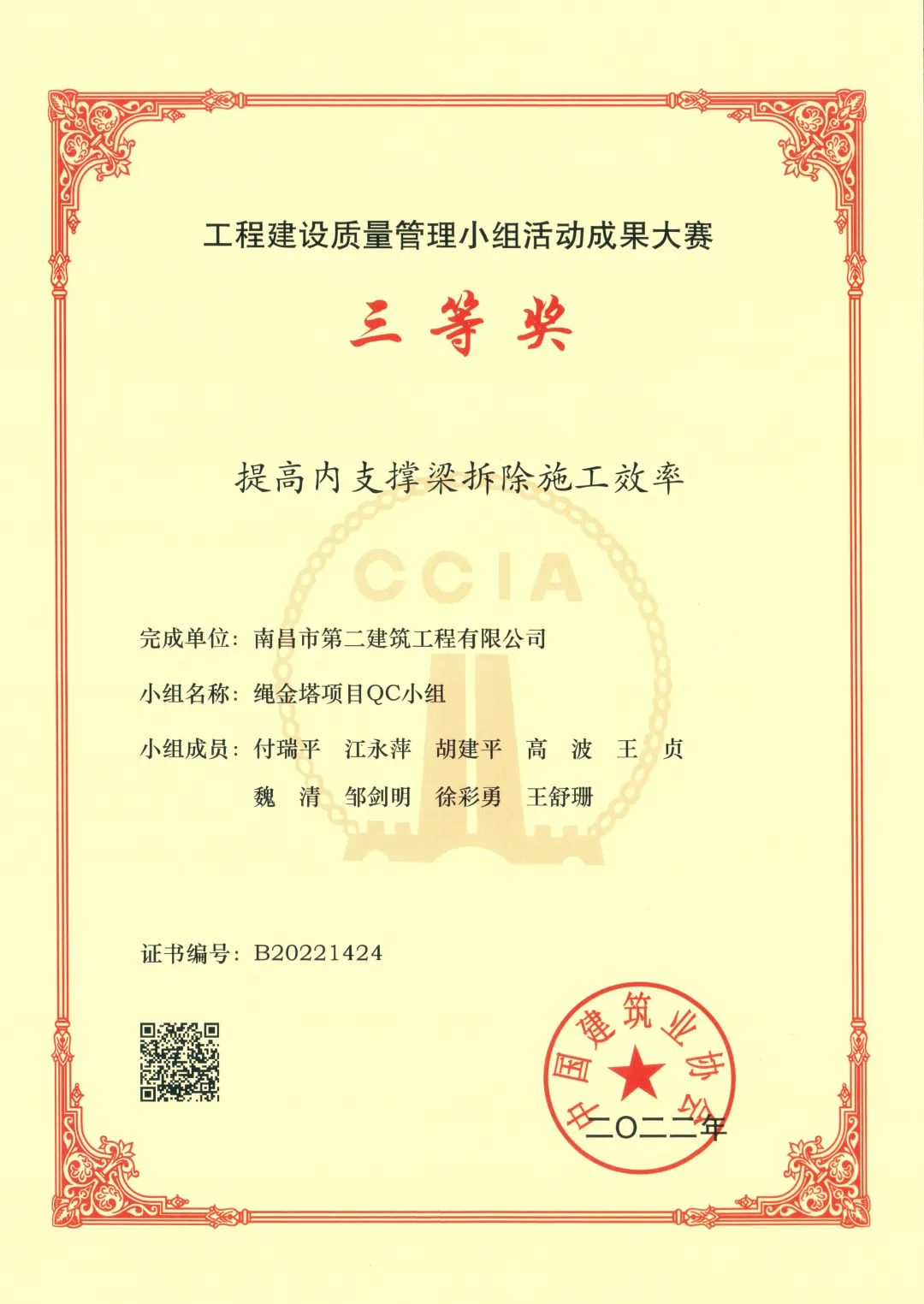 近日,公司繩金塔項目QC小組在2022年全國工程建設(shè)質(zhì)量管理小組活動成果大賽評選中榮獲三等獎。