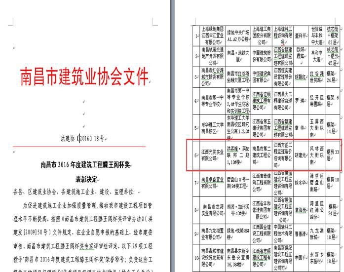 由南昌市第二建筑工程公司承建的江西旺旺新建廠房1#車間工程獲“2015年度江西省優(yōu)良工程獎”,宜春市明月大橋(原宜春大橋)改建及引道工程榮獲“2015年度江西省杜鵑花獎”[摘自江西省住房和城鄉(xiāng)建設廳文件贛建質(zhì)字[2016]5號]。
